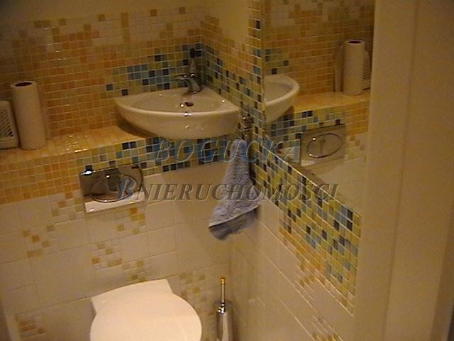 - ŁAZIENKA z kabiną prysznicową i hydromasażem zabudowaną pralką w jasnych , ciepłych kolorach. Osobno toaleta.