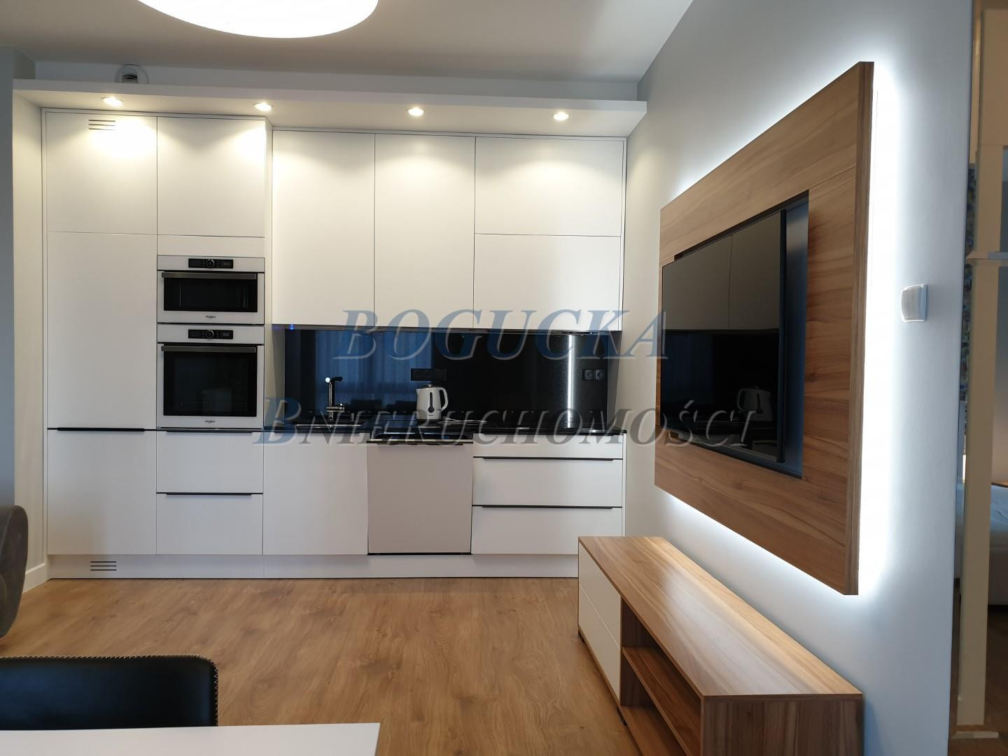 Posiada pełen sprzęt: płytę indukcyjną, piekarnik , zmywarkę , kuchnię mikrofalową, pralkę