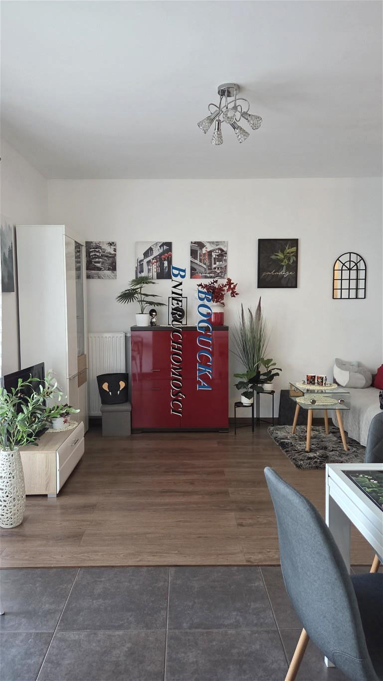- funkcjonalny rozkład przy małym metrażu (salon z aneksem kuchennym, oddzielna sypialnia, garderoba i duża loggia (6,38 m2),