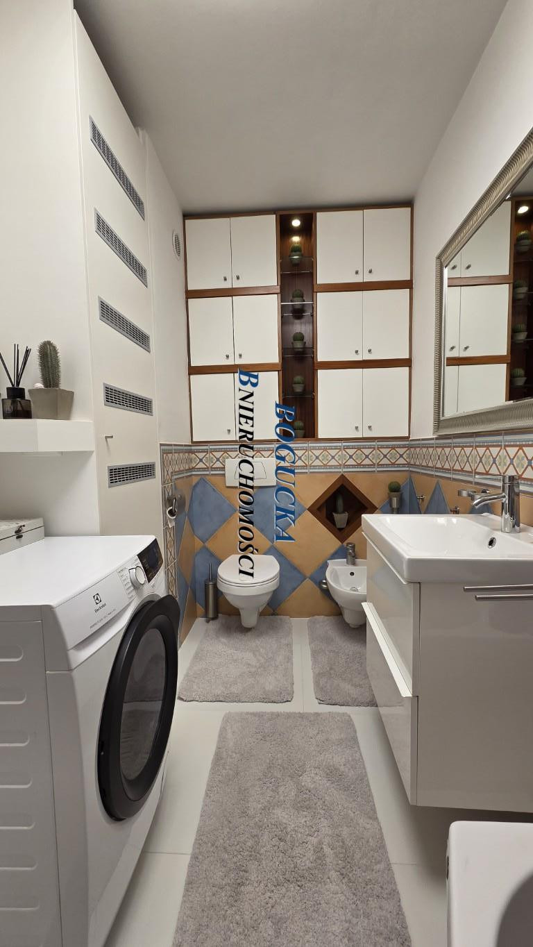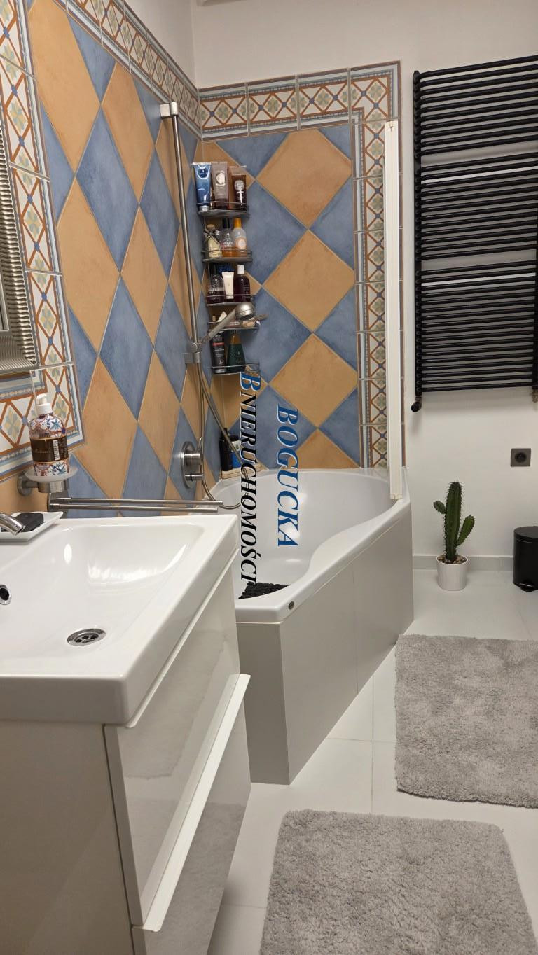 - Sypialnie - Szafy w zabudowie na zamówienie, - - Łazienka - wykończona w jasnej tonacji, wanna,